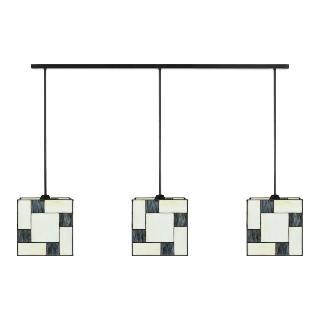 3 x Tiffany Mondrian Cubic mit Armatur für Hängelampe am Deckenbalken