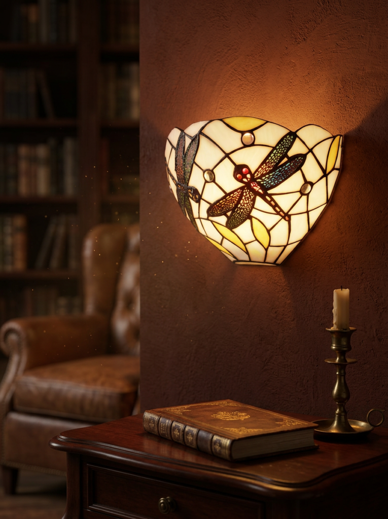 Tiffany Wandleuchte Dragonfly – Libelle Creme | 2-flammig Pedrera