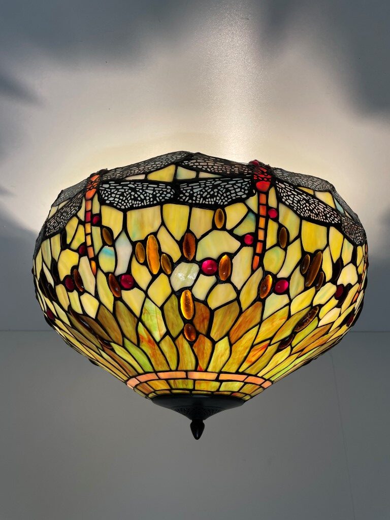 Egal, ob Sie einen Billardtisch haben oder einfach nur eine stilvolle Lampe für Ihr Interieur suchen, diese Tiffany-Billardtischlampe mit Libellenmuster wird sicher die Aufmerksamkeit auf sich ziehen und eine wunderbare Ergänzung für jeden Raum sein.