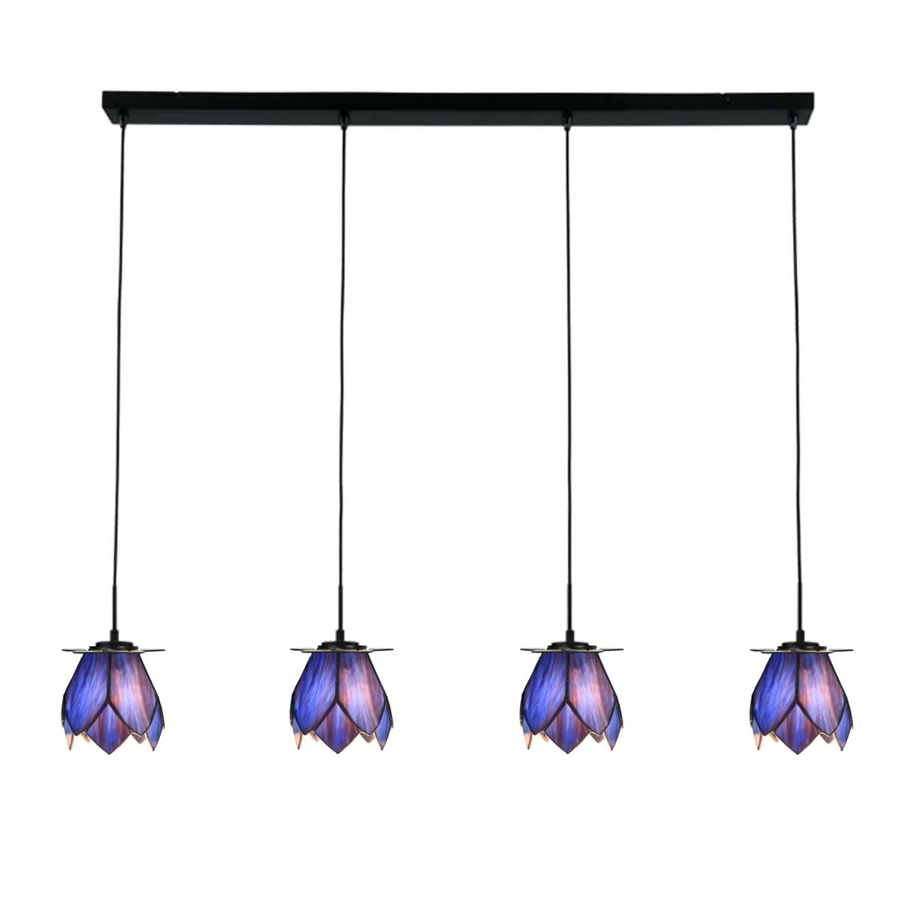 Tiffany Hängelampe Blue Lotus – 4-flammige Balkenleuchte – blaue Lotusblume