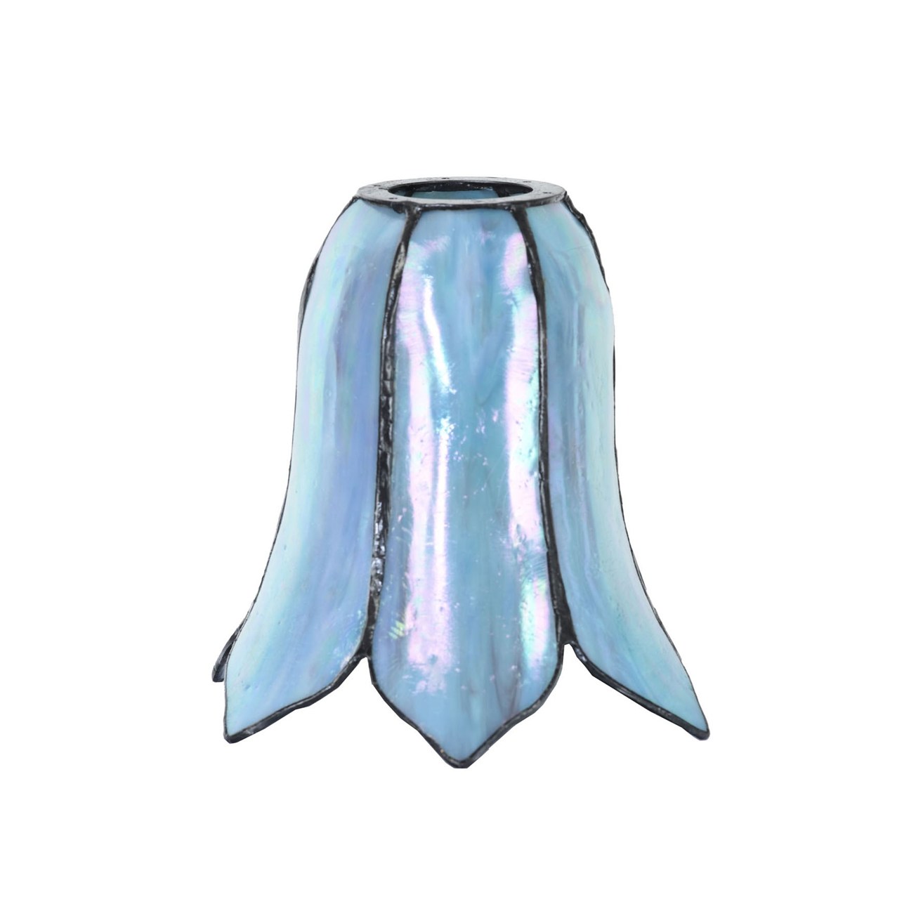Die Tiffany-Glasschirme sind wie feine Blüten gestaltet und zeigen eine tiefblaue Farbe mit irisierendem Glanz, in dem sich subtile Regenbogentöne widerspiegeln. Dies sorgt für ein faszinierendes Lichtspiel und verleiht der Lampe eine ruhige und edle Ausstrahlung. Blau – die Farbe von Meer und Himmel – bringt Weite und Harmonie in den Raum.