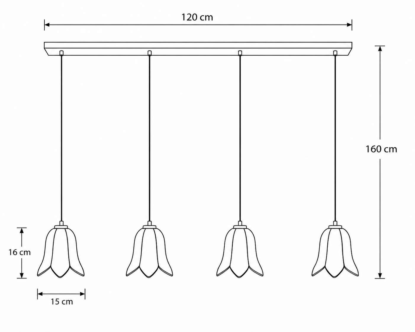 Dank der 4 Lichtquellen eignet sich diese Hängelampe ideal für über dem Esstisch, einer Kücheninsel oder einem Arbeitsplatz und sorgt für eine gleichmäßige Ausleuchtung.
