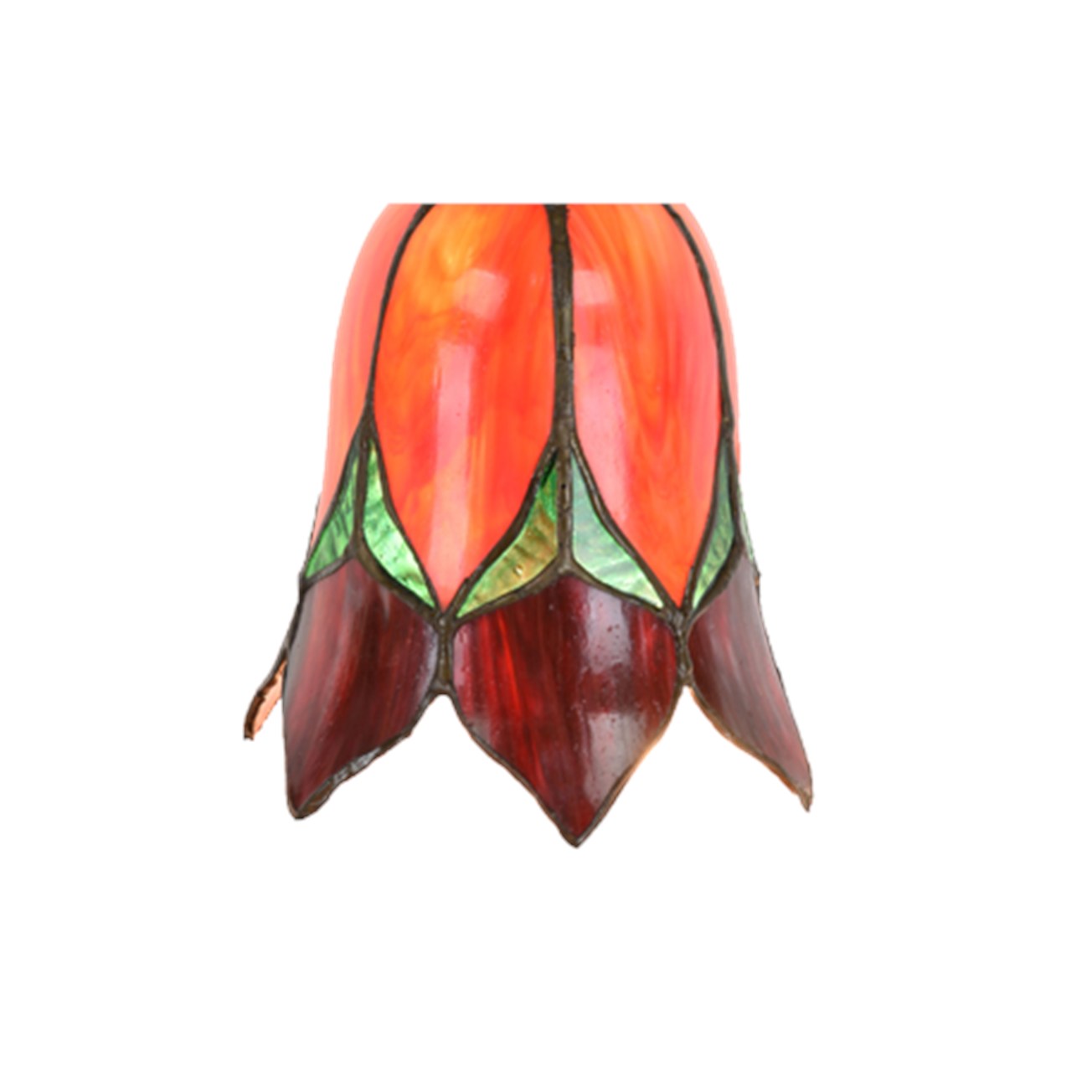 Die Tiffany-Glasschirme sind wie üppige Blüten gestaltet und handgefertigt aus echtem Glas. Die Kombination aus tiefem Rot und frischen grünen Akzenten sorgt für ein lebendiges und harmonisches Farbspiel. Die anmutigen Blütenformen verleihen der Lampe eine weiche und romantische Ausstrahlung.