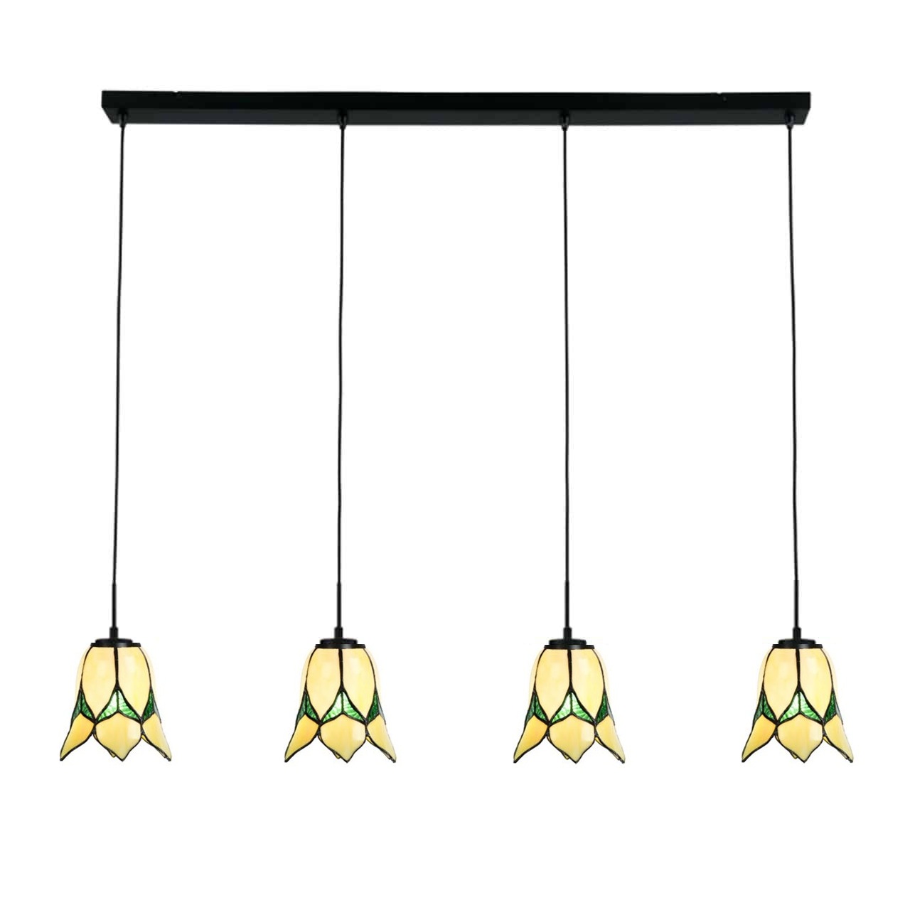 Tiffany Hängelampe Lovely Flower Yellow – 4-flammige Balkenleuchte – gelb/grüne Tulpenform