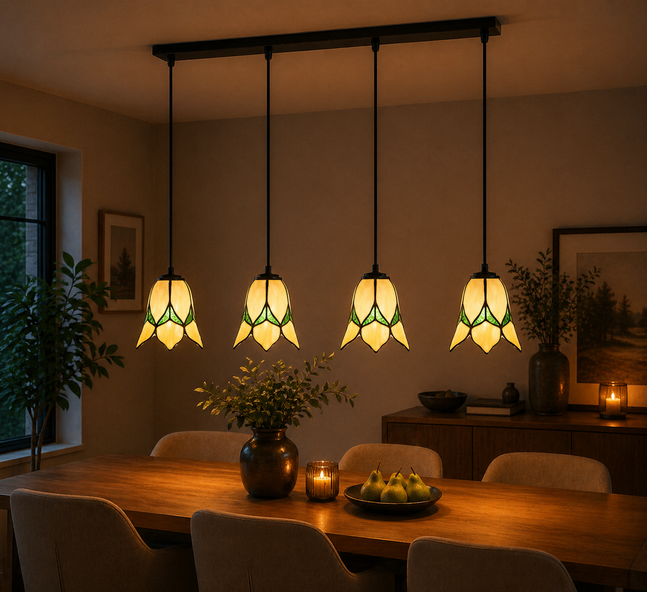 Eine elegante Tiffany Hängelampe in Tulpenform – perfekt für eine frische und stilvolle Atmosphäre.