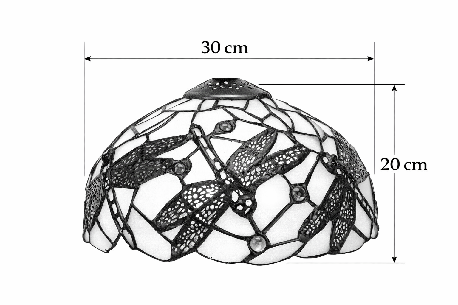 Der Tiffany Lampenschirm Dragonfly Pedrera 30 cm ist ein eleganter Glas-in-Blei Lampenschirm mit Libellenmotiv in hellen Creme- und Naturtönen, ideal zur Erneuerung oder Aufwertung Ihrer bestehenden Leuchte. Der Schirm ist handgefertigt aus kleinen Stücken echtem Glas, wodurch der typische Tiffany-Effekt und ein warmes, angenehmes Licht entstehen.