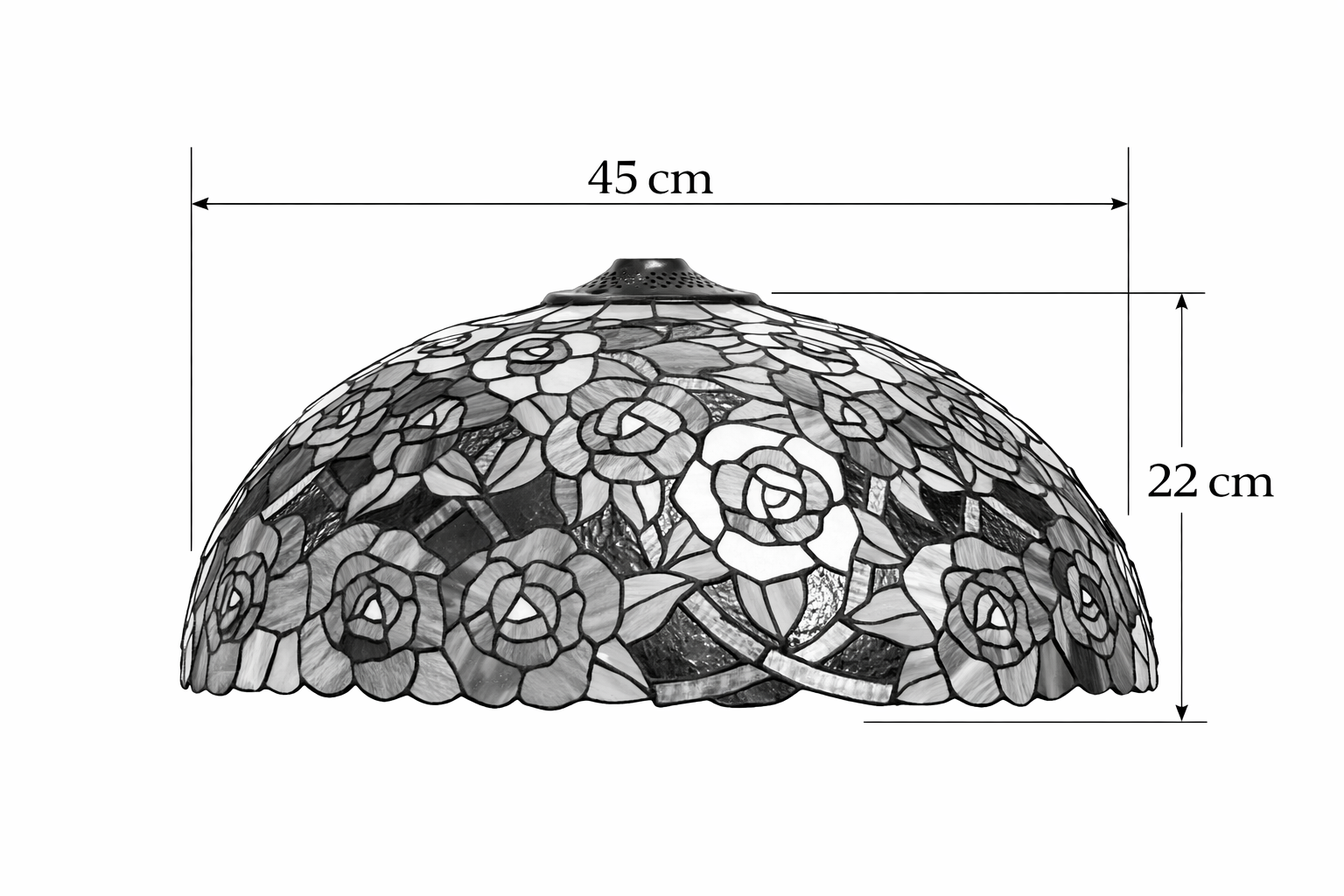 Der Tiffany Lampenschirm New York 45 cm ist ein dekorativer Glas-in-Blei Lampenschirm mit Rosenmotiv, ideal zur Erneuerung oder Aufwertung Ihrer bestehenden Leuchte. Der Schirm ist handgefertigt aus kleinen Stücken echtem Glas, wodurch der typische Tiffany-Effekt und ein warmes, stimmungsvolles Licht entstehen.